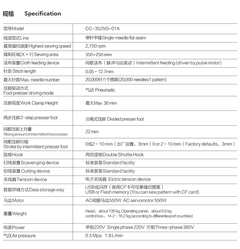 CC-3525G-01A ELECTRIC PATTERN SEWING MACHINE